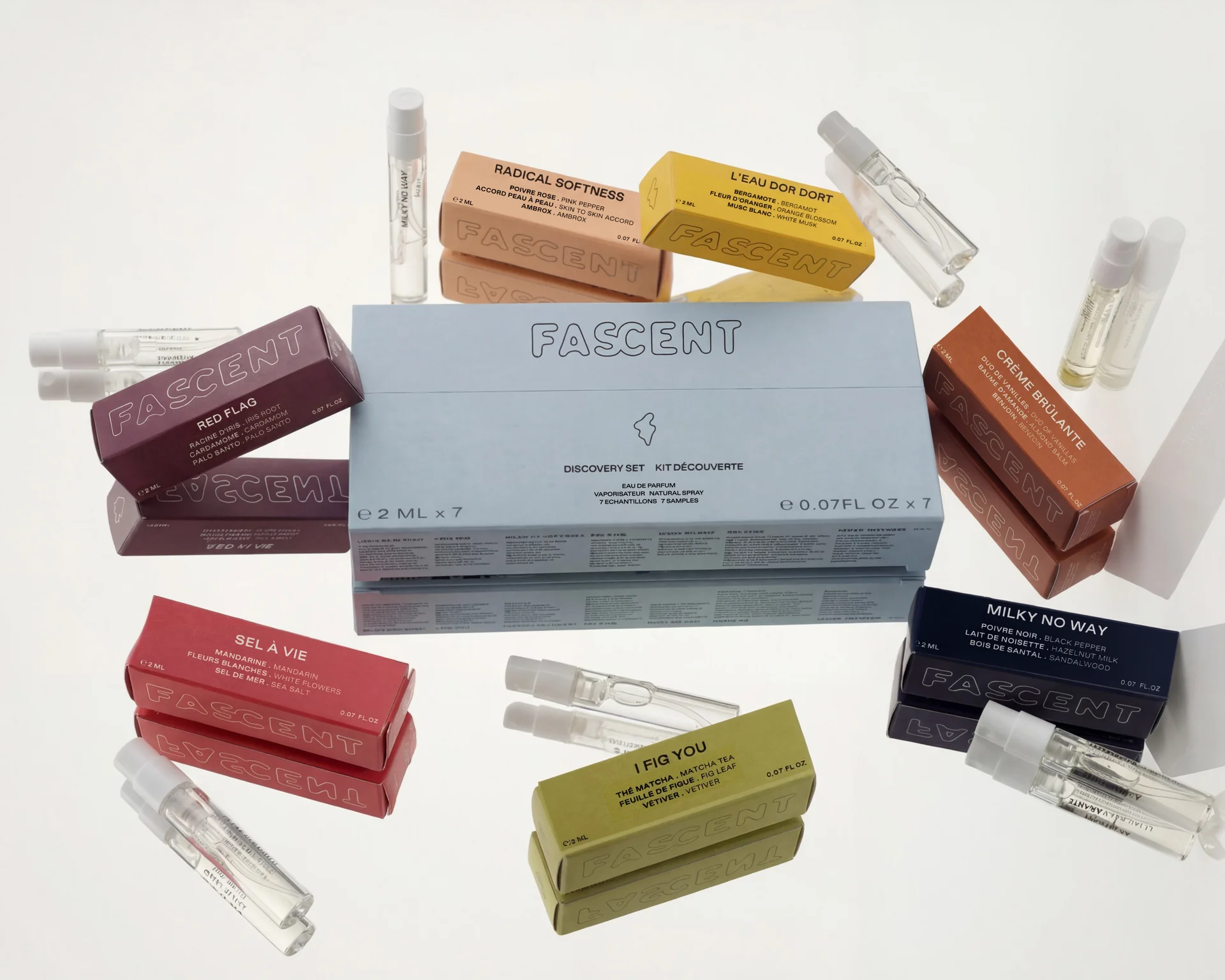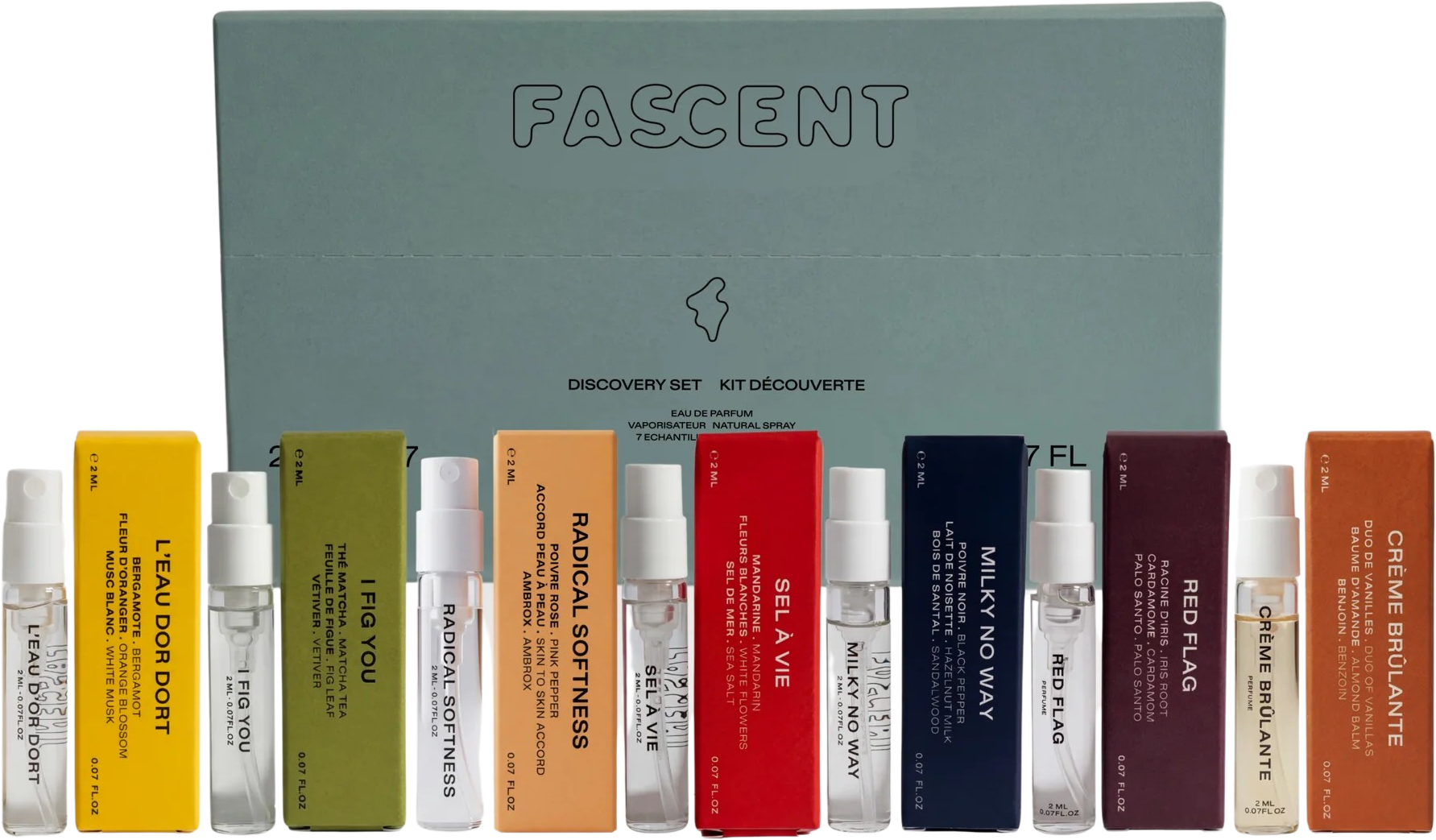 Das Discovery Set von FASCENT beinhaltet sieben Düfte in Mini-Größe und bietet eine Vielfalt an Duftnuancen, die du je nach Vorliebe und Stimmung tragen kannst - perfekt um deinen neuen Duft-Stil herauszufinden.
