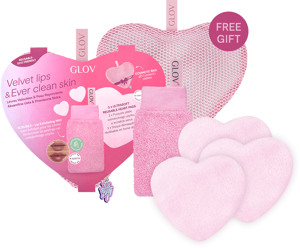 Das Velvet Lips & Ever Clear Skin Set von GLOV verleiht dir unwiderstehlich weiche Lippen. Der kleine Handschuh für den Finger, peelt die Lippen sanft und hinterlässt ein angenehmes Gefühl, während die Abschminkpads Rückstände von Make-up schonend entfernen. Das Duo lässt sich ideal in der Waschmaschine reinigen und spart eine große Menge an Müll. Die tolle Kosmetiktasche ist gratis im Set enthalten.