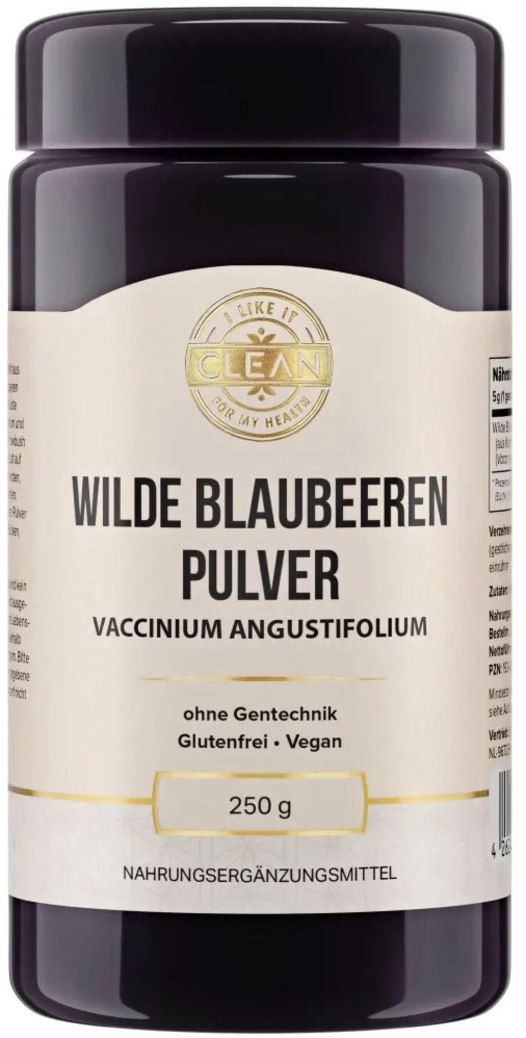 Wilde Blaubeeren sind äußerst nährstoffreich und haben einen hohen Gehalt an Polyphenolen. Die Blaubeeren für das Pulver von i like it clean werden einmal im Jahr am Höhepunkt ihrer Reife geerntet und anschließend schonend getrocknet und vermahlen. Das Pulver ist vegan und frei von Gluten und Gentechnik.