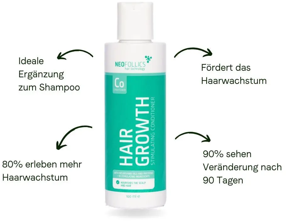 - Wasche zuerst das Haar mit einem Shampoo, vorzugsweise mit dem Hair Growth Stimulating Shampoo von Neofollics.